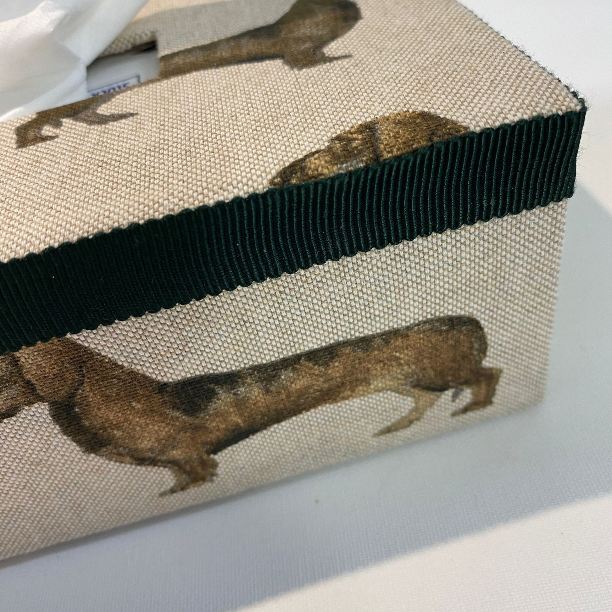 Diese Box mit Dackelmotiv wird einfach über die gängige Box aus dem Drogeriemarkt gestülpt, schon ist sie ein Hingucker – nicht nur für Dackel-Liebhaber!