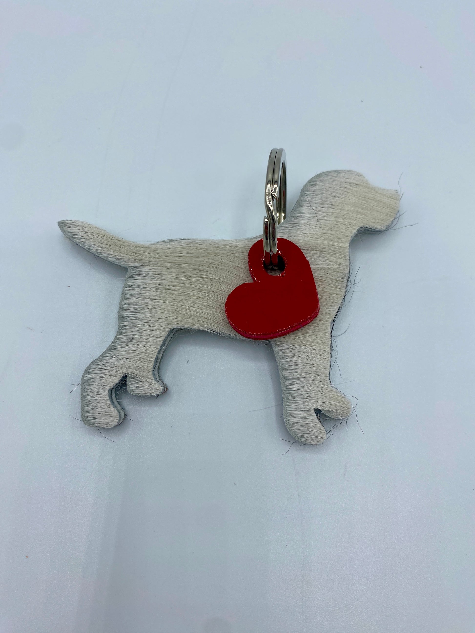 Schöner kann man seinen Schlüssel nicht aufbewahren. Mit dem Hund aus Fell findet man den Anhänger sofort. Und das rote Lederherz am Ring zeigt, dass man ein echter Hundefreund ist...