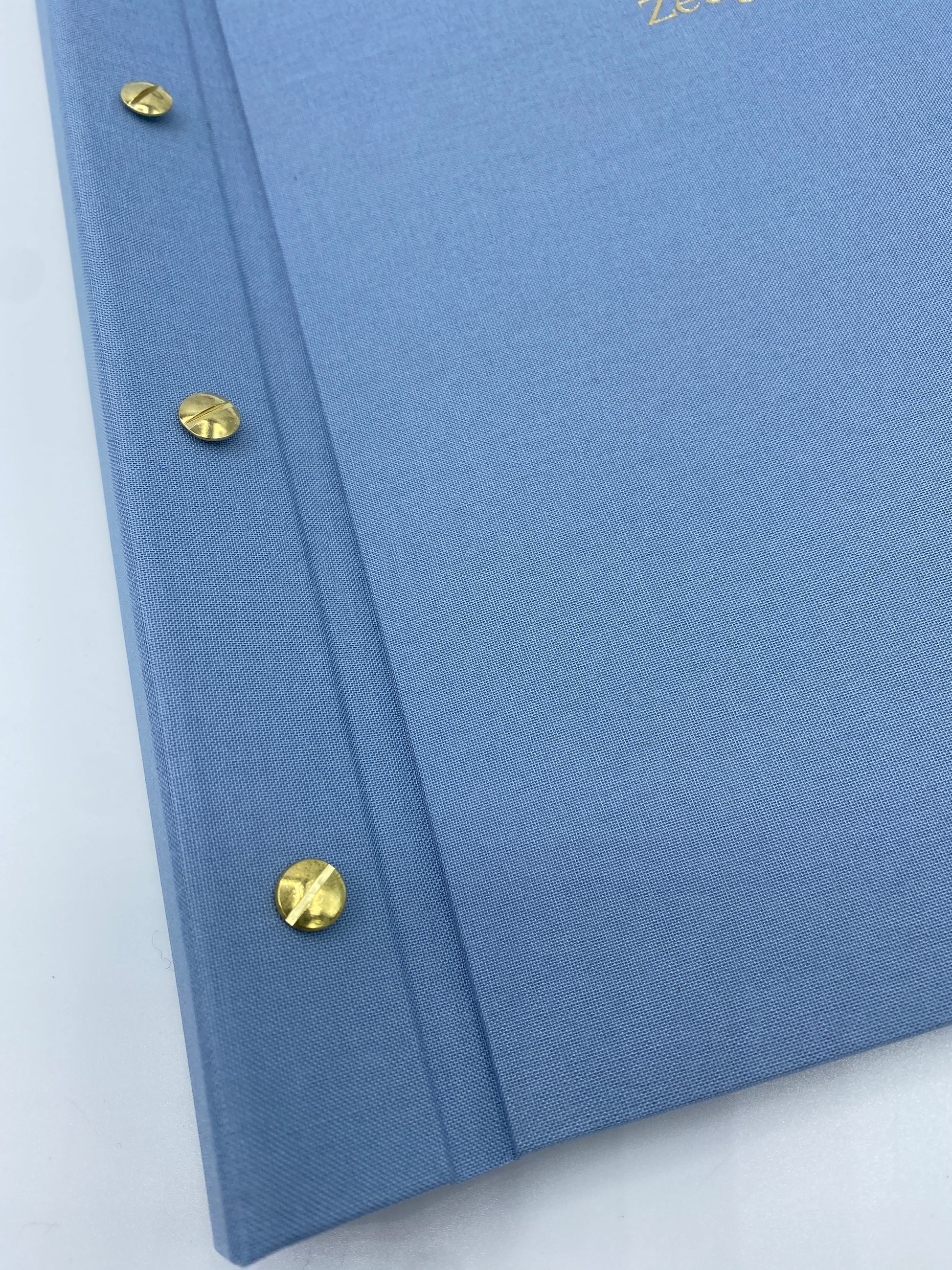 Durch das einfache Archivsystem lassen sich einzelne Seiten – entweder in einer Folie geschützt oder direkt eingehängt – jederzeit ergänzen oder austauschen: ganz einfach die Buchschrauben aus Messing lösen und die Buchdeckel abnehmen. Die goldene Prägung auf dem Deckel zeigt, was sich in der Mappe befindet.